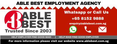 Able Best Employment Agency was established in 2003 to provide Foreign Domestic Workers to households in Singapore. We work with several reputable and trusted training partners from Indonesia, Philippines as well as Myanmar to provide these domestic helpers to Singapore families. Over the years, we have since developed a reputation of being a reliable and trusted Singapore maid agency to our customers.We are officially licensed by the Ministry of Manpower as an employment agency to provide FDWs in Singapore. We believe in providing the best quality service to all our customers. Our experience in the employment industry has given us the competitive advantage over other agencies in Singapore. Able Best aims to be the top maid agency in Singapore for Foreign Domestic Workers.