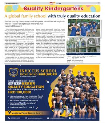 Invictus has expanded rapidly due to its value proposition. It opened its English-Chinese bilingual kindergarten and primary campus at Tseung Kwan O in 2020, and is planning to open its English-medium secondary campus at Chai Wan by end of 2020.